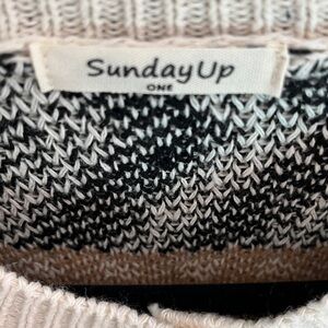 Chic knit sweater by Sunday Up. Features a stylish black and cream pattern. Ideal for cozy layering.
