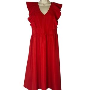 Sunday Up Red Sundress with Flutter Sleeves and V-neck for Cocktail