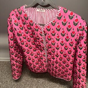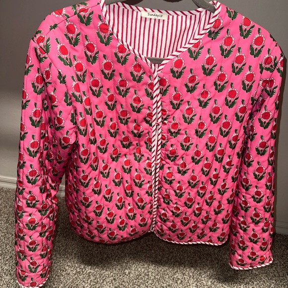 Sunday Up Unisex Indian Pink Floral Quilted Jacket L