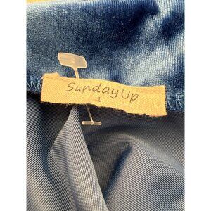 Sunday Up Velvet Mini Dress Large Long Sleeve Pleated V Neck Blue Party Cocktail