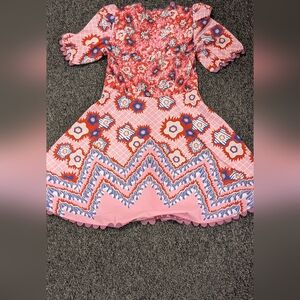 Sunday Up Zip Up Pink Red Blue Floral Boho Knee Length Mini Dress Small NWOT