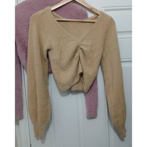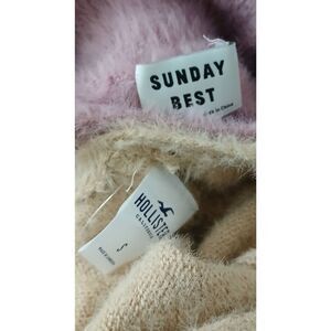 Sunday best womens small pink cropped sweater Hollister tan lot of 2 fuzzy soft