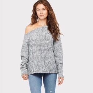 Sunday in Brooklyn Sara One Shoulder Chunky Wool Blend Sweater in Grey Size XS