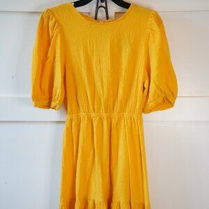 Sunday in Brooklyn, Tie Open Back Puff Sleeve Ruffle Midi Dress, Yellow, Gold
