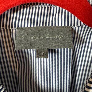 Sunday in Brooklyn blue and white striped button down shirt. Anthropologie. Shoulders have puff to them. Soft fabric. Size small