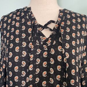 Sunday in Brooklyn Floral Ruffle Tunic Lace Up Top