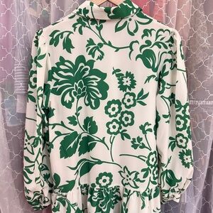 Sunday up Green Floral Ruffle Hem Montecito Dress Small