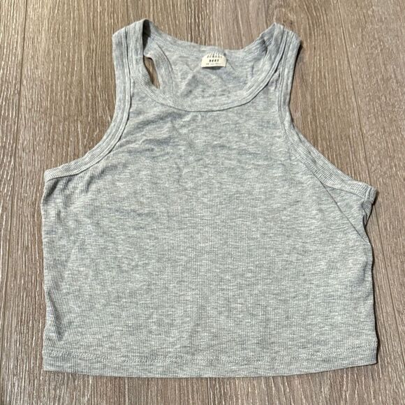 Stylish heather gray crop top. Soft ribbed fabric. Perfect for everyday wear.