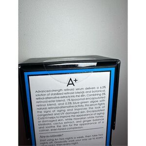 Advanced-strength retinoid serum delivers a 6.5% solution of stabilized retinoid blends and botanical, retinol-alternative extracts into the skin.