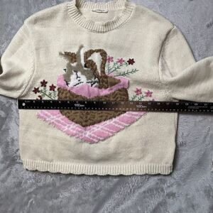 SundayUp Bunny Sweater Womens Sz L Cottagecore Cropped Rabbit coquette