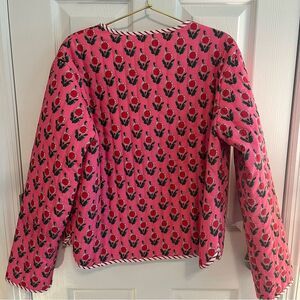 Add a pop of color to your wardrobe with this chic pink floral utility jacket. Ideal for a stylish, everyday look.