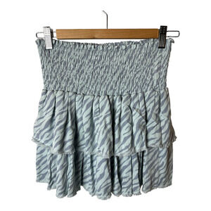 Sundays Blue Zebra Print Layered Raw Edge Mini Skirt Women's Size XS
