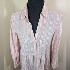 Sundays Elliot Shirt Dress Midi Maxi Pink Striped Long Sleeve Collared Small