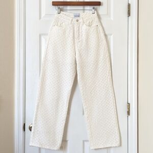 Sundays Funky Eyelet Distressed High Waisted Relaxed Straight Leg Jeans White S