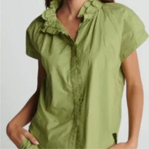 Sundays Leah shirt sage Green Ruffle Button Down top