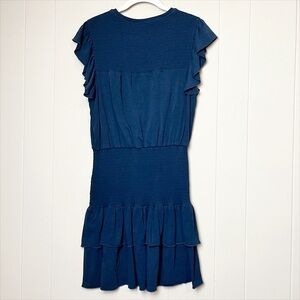 Sundays Ridley Dress Small Navy Blue stretch jersey knit ruffle flutter sleeve casual comfy mini