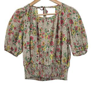 Sundays Womens S Ada Puff Sleeve Elastic Waist Crop Top Blouse in Wallflower NWT