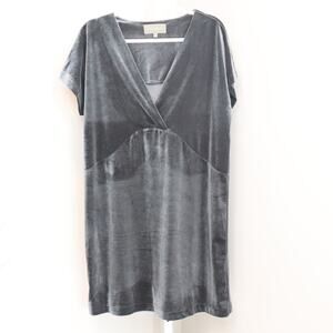 Sundays in Brooklyn Velvet Mini Dress Size L Gray Short Sleeve V-Neck Stretchy