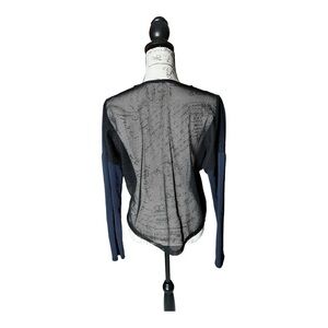 Cute too for yoga or gym. Navy blue front sleeves with black mesh back. Excellent pre owned condition