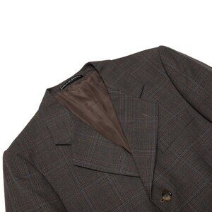 ...The West German plaid blazer stands as a meticulously structured artifact of mid-to-late 20th-century European tailoring, encapsulating the era’s precise construction, durable textiles, and formal yet assertive aesthetic. Manufactured before German reunification in 1990, its Made in West Germany label not only places it within a historical context but also signals a craftsmanship tradition influenced by British and Italian tailoring philosophies. German suiting from the 1950s through the 1980s was renowned for its sharp silhouettes, high-quality woven fabrics, and pragmatic blend of heritage techniques with modern synthetic advancements. This piece, featuring a Glen check plaid pattern, a structured silhouette, and a three-button stance, exemplifies the calculated balance between classicism and functionality that defined West German menswear. The blazer’s design language is firmly rooted in European sartorial traditions, borrowing from the British aristocracy’s affinity for Glen check patterns while reinforcing the structured, methodical precision of German tailoring. The presence of a peaked lapel—wide and sharply contoured, with reinforced topstitching—lends the jacket a formal rigidity, aligning it with the power dressing of mid-century professional attire.