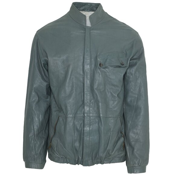 The leather blouson jacket, devoid of overt branding, originates from a mid-to-late 20th-century European manufacturing tradition rooted in standardized utility and material efficiency rather than designer authorship. Its likely provenance is West Germany, where during the late 1970s through the early 1990s, a highly industrialized garment sector supported both domestic and export markets through private-label and department store production. The integration of a Prym zipper—produced by the renowned German hardware manufacturer based in Stolberg—grounds this piece firmly within the West German manufacturing ecosystem, linking it to a network of contract producers servicing Nordic, Benelux, and Austrian markets with garments emphasizing durability, technical discipline, and visual moderation. The jacket’s absence of signature branding, combined with its industrial precision and minimalist silhouette, places it within the broader context of Cold War-era Central European utilitarian fashion—distinct from artisanal or avant-garde trajectories, yet foundational to the postwar civilian-military hybrid vocabulary later abstracted by designers such as Helmut Lang and Kostas Murkudis.