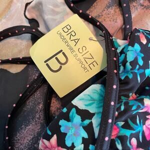 Sundazed Women's Black Multi Floral Brooke Underwire Bikini Swim Top sz 34B