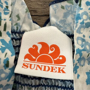 Sundek girls size 8 Blue Floral Print Smocked Ruffle Tank Dress Sundress Cotton