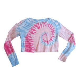 Sundown by Splendid Tie Dye Crop Top Womens XS Long Sleeve Oversized Tee T-Shirt