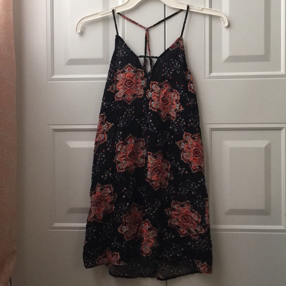 Light weight black sundress with racerback straps. Above knee/mini dress