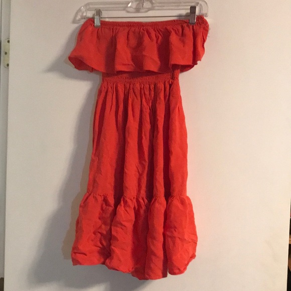 Sundress in good condition. Salmon color. Stretchy material. Good for warm weather. Ruffle over bust.