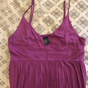 Great sundress for the summer. Can be used as a swim cover up or as a fun, comfy dress. Spaghetti straps, criss cross front, empire waist, with an A from skirt. Fabric has some give and stretch, and it’s very comfortable over all. I’ve had this dress for years, but have only worn it a handful of times. Still in great condition.