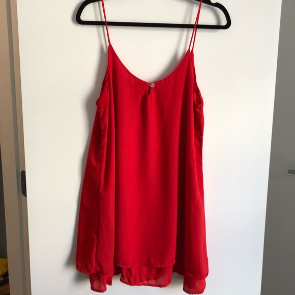 Red sundress with brown button front detail. Worn once for sorority recruitment. Make me an offer!!