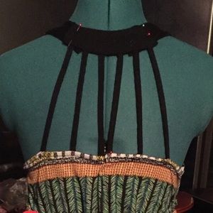 Geometric patterned sundress. Halter neck and longer in the back.