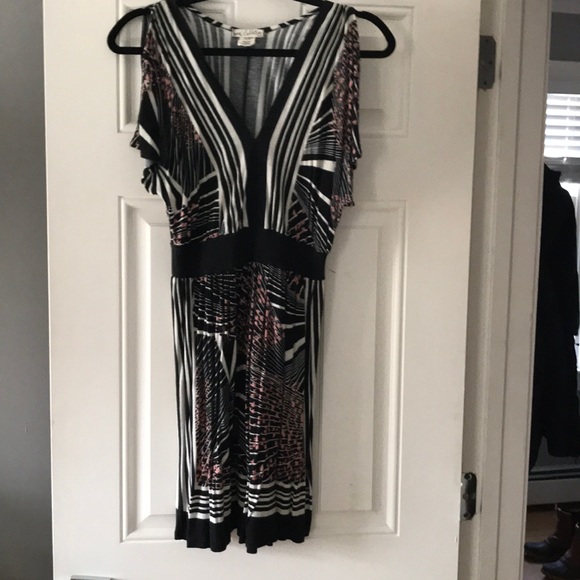 Short sleeve, cold shoulder sundress. Feels super light and airy. EUC