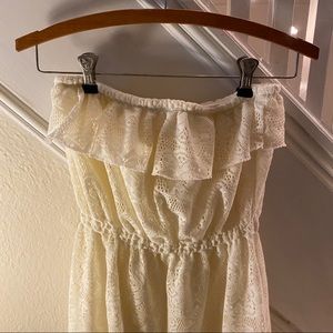NEVER WORN Lace sundress Cream Strapless Ruffled breast Elastic tethered waistline 27” total length