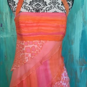 Silk/poly Laundry by Shelli Segal petite size 6 orange and light pink layered dress. Very pretty on. Like new great condition. Zipper on side.
