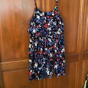 Sundress with flutter top and adjustable straps. Back has ruched elastic along the upper back for a better fit.