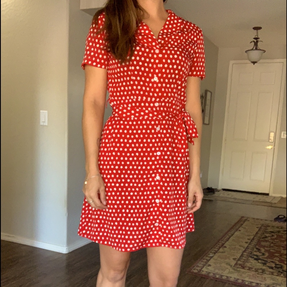 Super adorable red with white polka dots sundress! Has a collar and buttons all the way down and comes with a little belt!! It also HAS POCKETS!!!