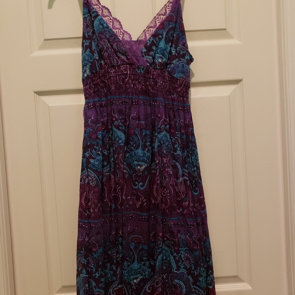 Excellent used condition, cotton fabric with lace on top, elastic waist, knee length