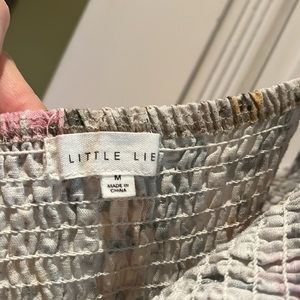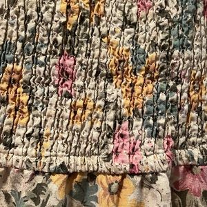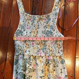 Little Lies! Yellow and green linen cotton mix sundress with ruffle at the bottom! Rouches up top for flexible fit. Only worn a few times.