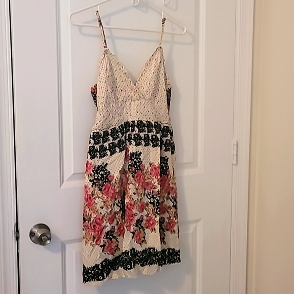 AXUEH sundress. wore for a baby shower. I'm 5'2" it hit right above my knee. I am a D cup fits like an empire waste with flowy skirt. has adjustable straps smoke free home. Excellent condition.