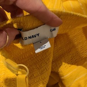 Smocked back Darted front Adjustable straps-fully lined Sunshine yellow with white stripes EUC-would benefit from iron or steaming