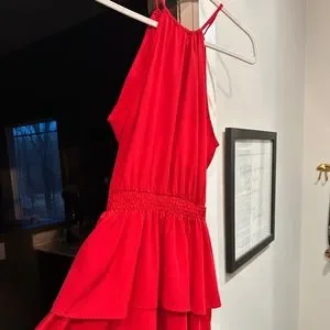 Red sun dress with ruffles. Ties in back. Ordered from amazon. Never worn. No tags with brand or size. I ordered it in small.