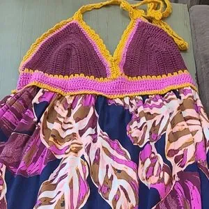 Adorable crocheted halter with flowing floral maxi skirted bottom. Worn a couple of times. Very good condition.