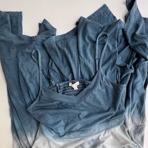 Hem & Thread Sundress in Blue Grey with adjustable Spaghetti straps and ruched back. V-neck, Flowy, Handkerchief hemline.