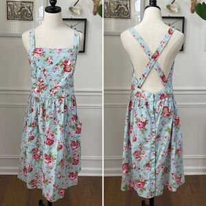 Sundress Light Blue Pink Red Rose Overall Style Midi Dress Swing Rockabilly L