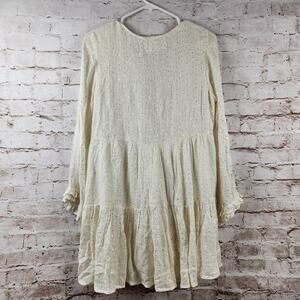Sundress Neo Short Dress Sequins Tassel Size XS/S Cream Long Sleeve