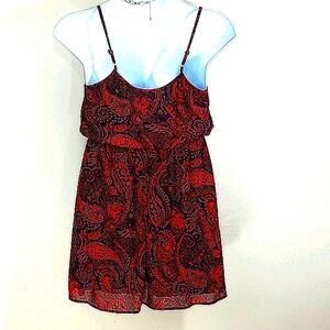 Sundress Sheer Chiffon lined red navy blue paisley Ruffled Whimsigoth Fairycore