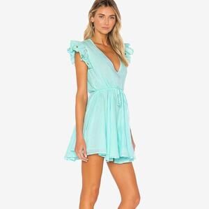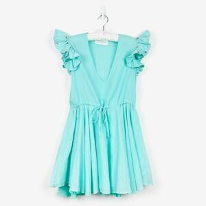 Sundress Viki Mini Dress Size XS/S Aqua Blue Cotton Resort Romantic Flowy Summer