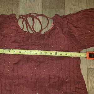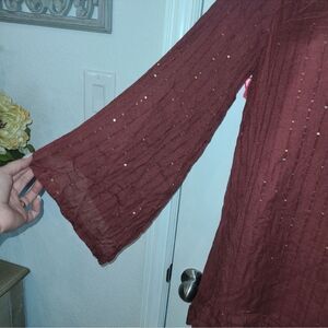 Elevate your wardrobe with this stylish rust knit dress. Perfect for vacation and summer ,sexy open beaded back. Flare sleeves, boho chic